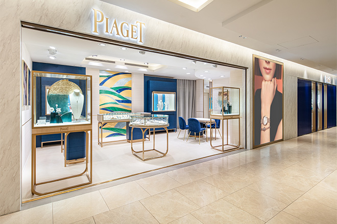 The boutique shows “Sunny side of life” spirit using white, gold and blue colors. We hope the guests to enjoy our watches and jewelries in a bright and luxurious space.
